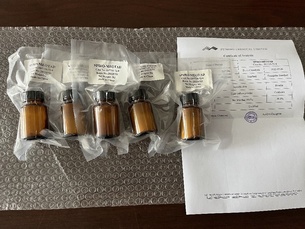 1スピロ-OMeTADは高いキャリア移動性があり,電池では電荷が光敏感層から電極により早く転送されることが可能になります.バッテリーの効率を向上させる.