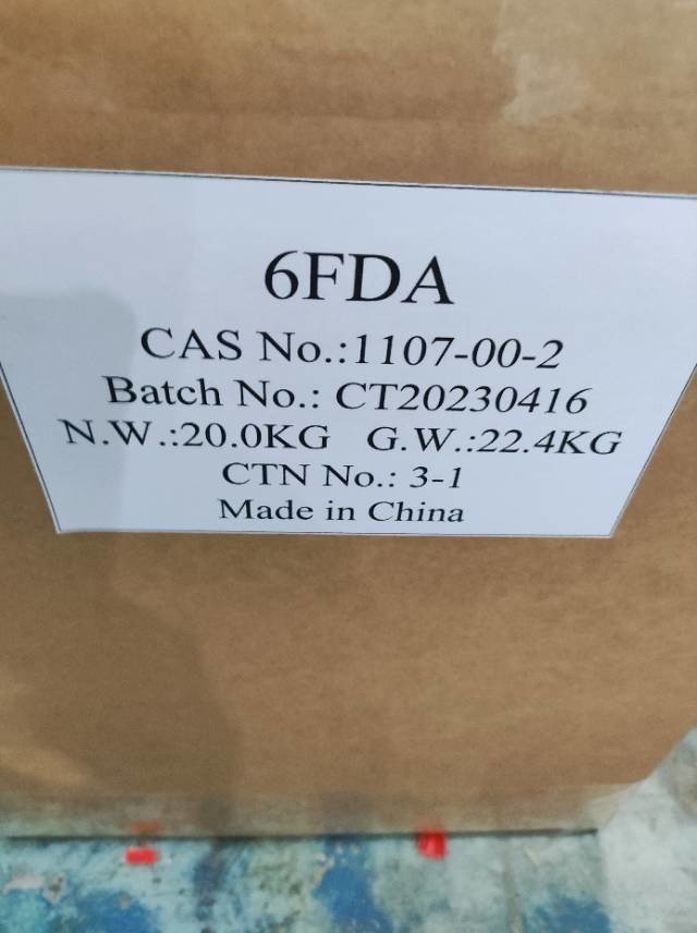 ヘクサフローロダイアニヒドリド (すなわち 4,4'- (ヘクサフローロイソプロピリデン) ダイフタルアンヒドリド, 6FDA)) は,最も広く使用されている6つのダイアニヒドリドモノマーの1つです.また,無色透明ポリミドにおける最も広く使用されるダイアニヒドリドモノメアですハクサフッロロジアンヒドリドから合成されたポリイミドのガラスの移行温度は通常300°C以上であり,機械的および電気的性質は良好なバランスにあります.これは依然として最も代表的なフッ化ポリアミドです.